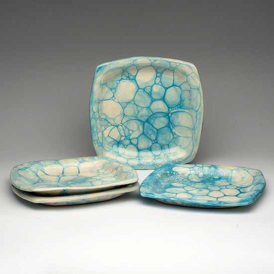 Since retirement in December 2008, she has had time to devote to the craft and growth in pottery. Her pieces are primarily hand built using textures to emboss surfaces and are individually crafted, which allows each piece to be unique reflecting her artistic interests. The result is one-of-a-kind decorative and functional pieces for use, display or gift giving.