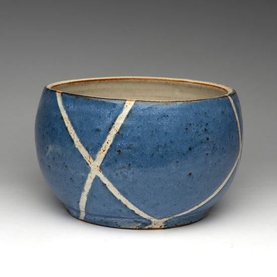 Medium bowl. Blue with white design. Shamsi's bio.